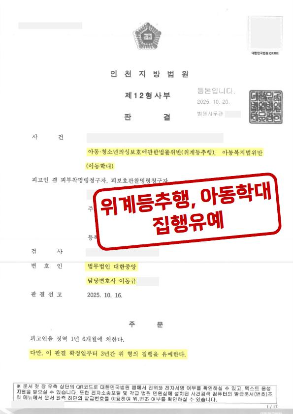 법무법인 대한중앙은 피해자들을 위해 형사공탁을 진행하고, A씨가 형사처벌을 받은 적이 없는 초범인 점, 학대행위와 추행의 정도가 중대하지는 않고 비교적 가벼운 행위였던 점, 평소 성행이 양호했던 점 등의 유리한 정상들을 소명하며 선처를 구하였습니다.