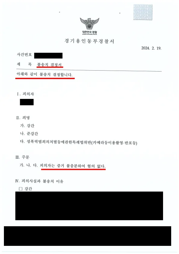 ■ 강간 준강간 카촬죄 불송치 성공사례 ■