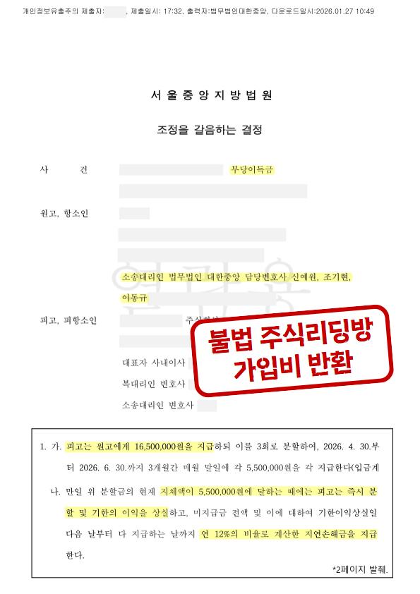 [민사] 불법주식리딩방 가입비 반환 성공사례